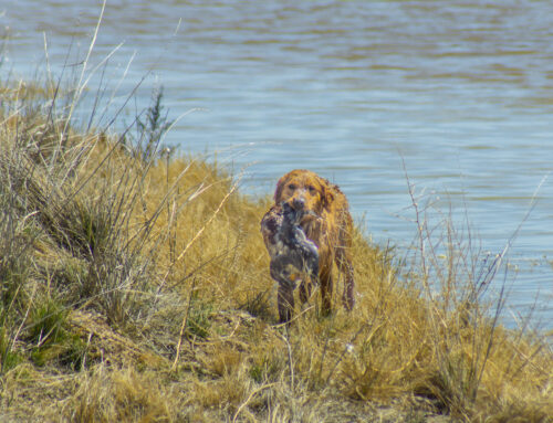 On March 4th, we took a beautiful drive up the Ennis, MT to pick up the latest member of the Hielan pack. Just south of Ennis and a little west of the Madison River, we met Larry Thompson, owner of Stonefly Retrievers and picked up Stonefly’s Crimson Balach of the Hielans (Barclay). He’s a beautiful male out of accomplished field lines. We are excited about his future!